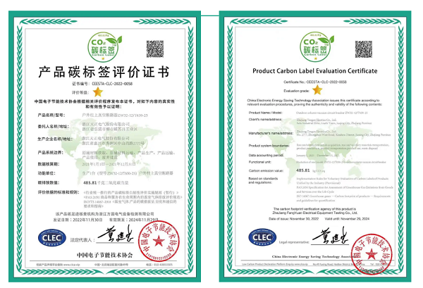 此次碳标签评价表明,完美真人电气生产的户外柱上真空断路产品,在碳排放大数据方面按国际通行惯例推进,并具备一定的优势,对促进产品全供应链的温室气体减排,达成“双碳”目标具有积极作用。此外,完美真人还获中国电子节能技术协会颁发的低碳产品供应商证书。
